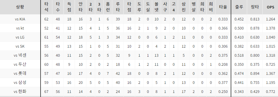 다른구단들 상대성적하고 , 확연하게 다른 성적이 나왔어